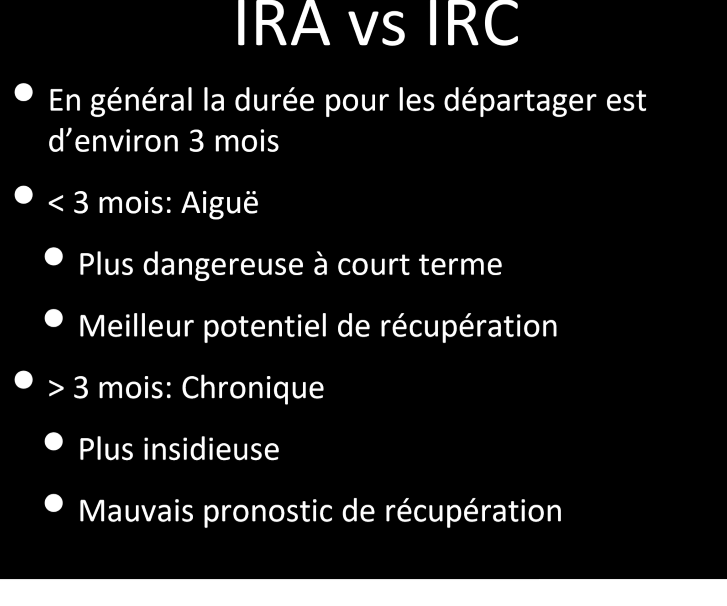 dans les test de laboratoire, quels resultats te sugerrerait une IRC plutot qu’IRA