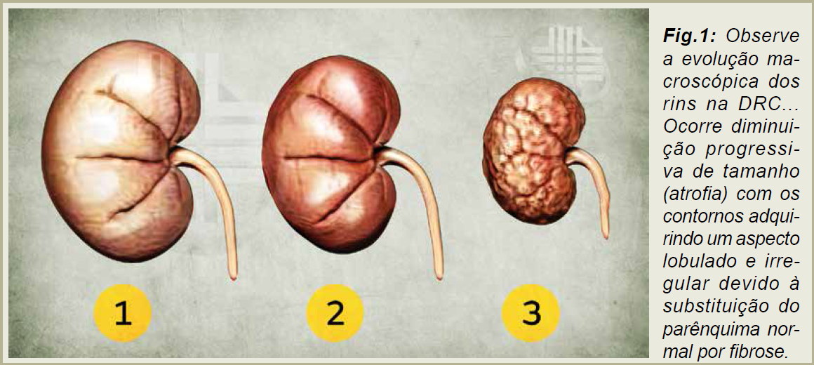 Neste momento, a histopatologia renal perde as características específicas da nefropatia inicial, apresentando uma alteração universal: fibrose glomerular e intersticial, aliada à atrofia dos túbulos (ou seja, “perda total” dos néfrons).