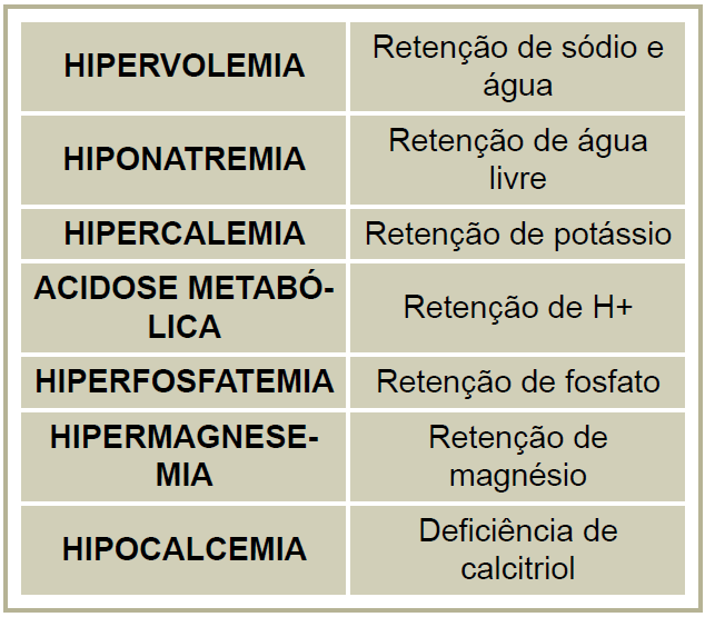 Na falência renal crônica lentamente progressiva, esses níveis podem cursar sem sintomas importantes, devido aos mecanismos de adaptação.