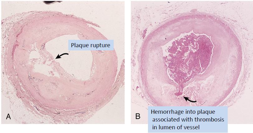 Ruptures/fissures/ulcers that can expose underlying thrombogenic substances