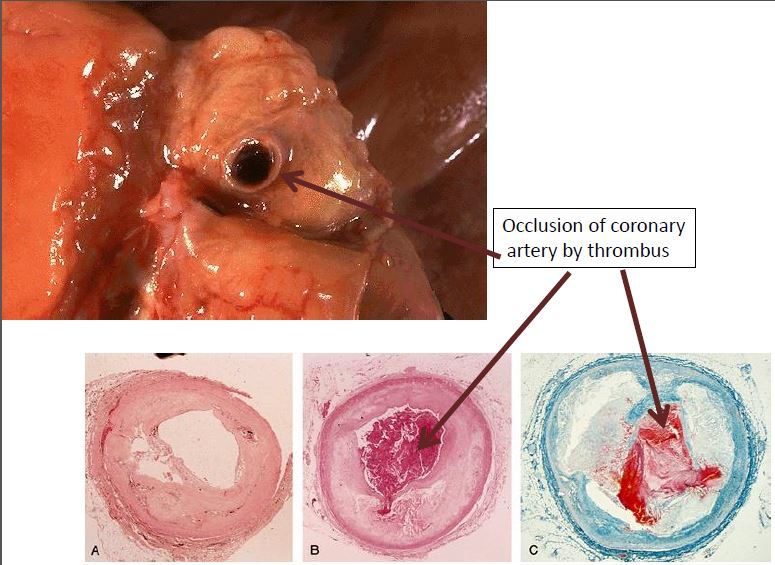 Coronary thrombosis - partial or total occlusion superimposed on a partially stenotic plaque