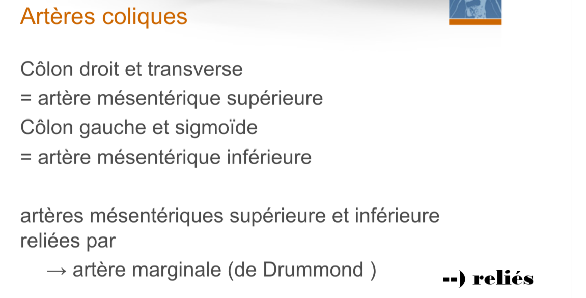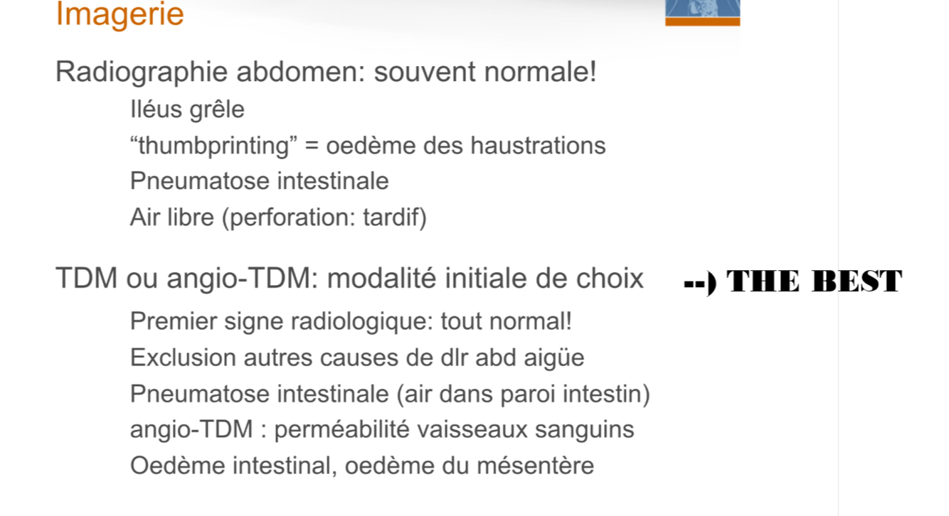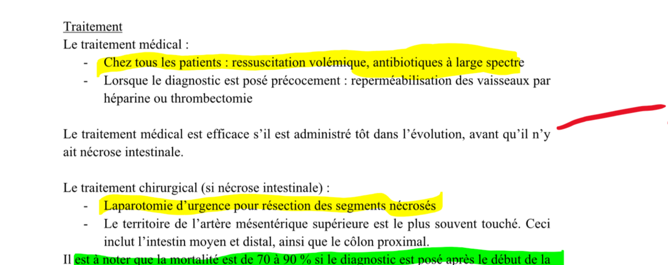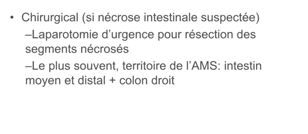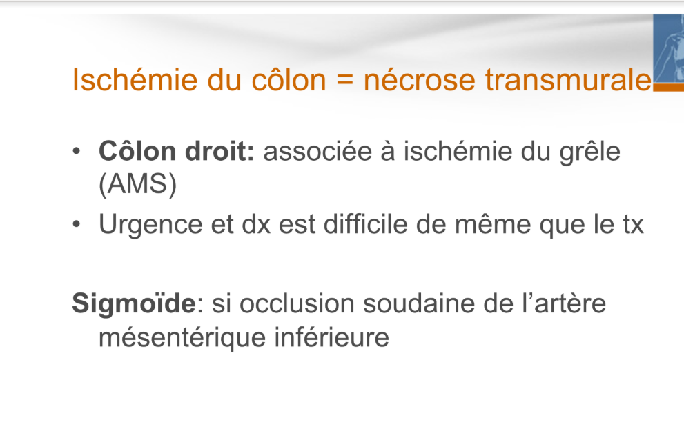 si colon droit/transverse–) associé à une ischémie du grêle comme c’est l’Artère Mésentérique supérieur qui irrigue