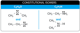 -Molecules that contain the same atoms but connected in different ways so they contain different functional groups and / or bonding patterns.