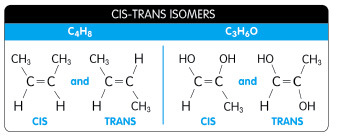 Geometrical isomers in which two identical substituents (or two pairs of two identical substituents) are bonded differently to carbon atoms participating in a double bond or ring bond.