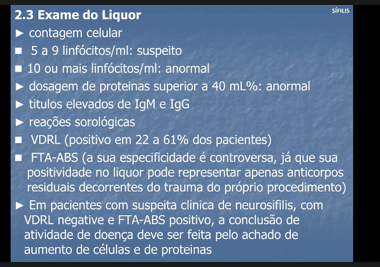 Exame direto não recomendado na mucosa oral–> existem outros saprobiotas Treponema