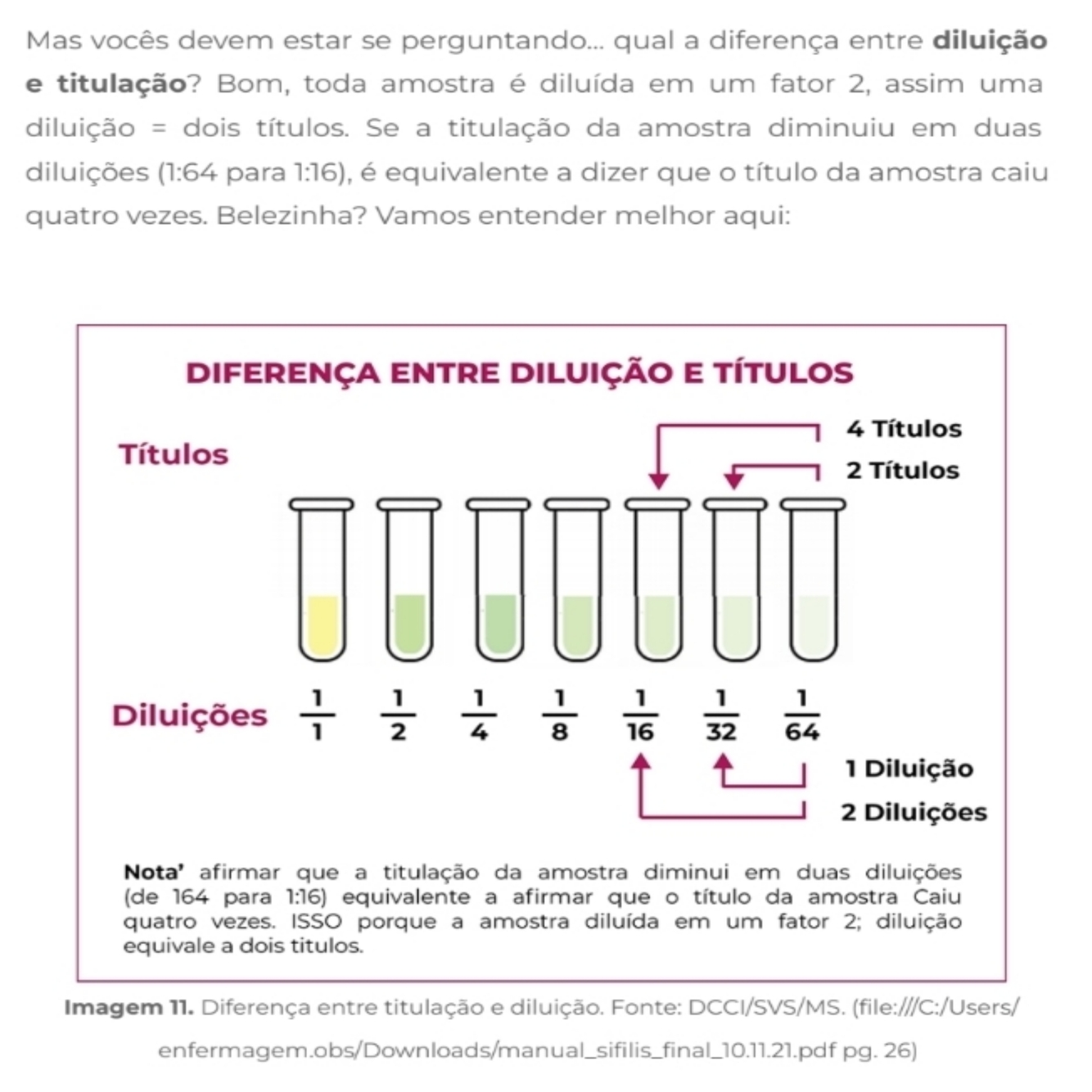 ▪︎ Queda na titulação em 2 diluições em 6 meses (sífilis recente)