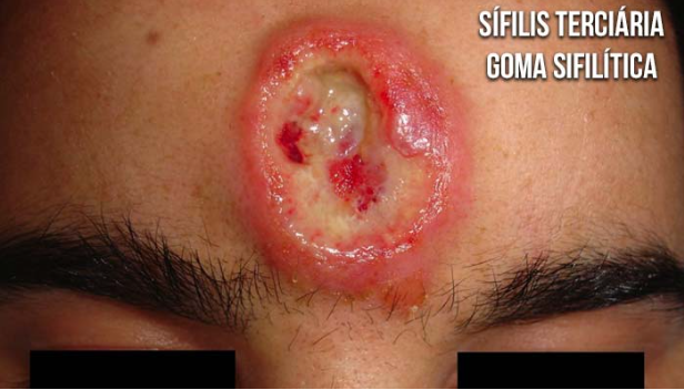 ▪︎ Gomas sifilíticas: tumores que liquefazem mucosas, ossos e outros tecidos.