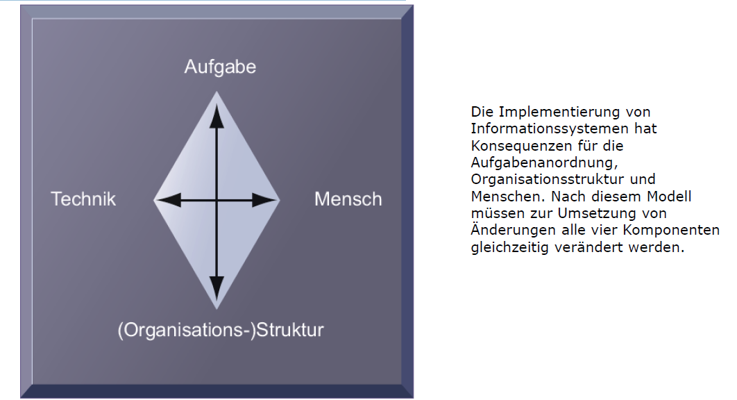 Wechselseitige Beziehung zwischen Technik,Organisationsstruktur, Aufgaben und Menschen im Unternehmen