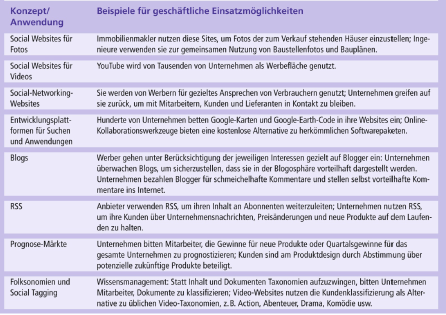 Geschäftliche Einsatzmöglichkeiten von Konzepten und Anwendungen im Kontext Social Media