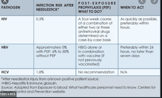 Hepatitis B prophylaxis Current CDC guidelines call for the administration of hepatitis B immune globulin (HBIG) and/or hepatitis B vaccine. While the efficacy of the combination has not been evaluated in the needlestick injury setting, it has been shown to be the most efficacious approach in the perinatal setting. The approach has no contraindications during pregnancy and lactation.