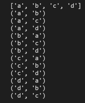 for item in itertools.permutations(letters, 2):