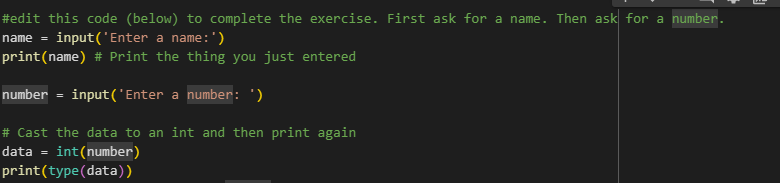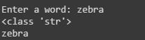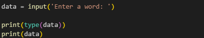 Write a code that takes user’s input of a word and stores into variable ‘data’