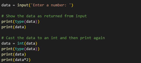 can also get numbers using input. They start as strings but then, if you are lucky, Python can convert them to int