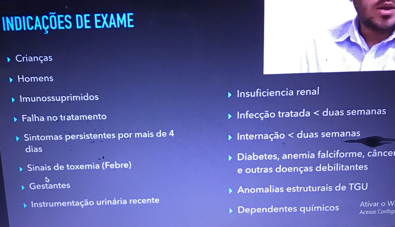 Quando houver uma indicação formal, solicitamos urocultura. Preferencialmente a urocultura é coletada antes do início do antibiótico