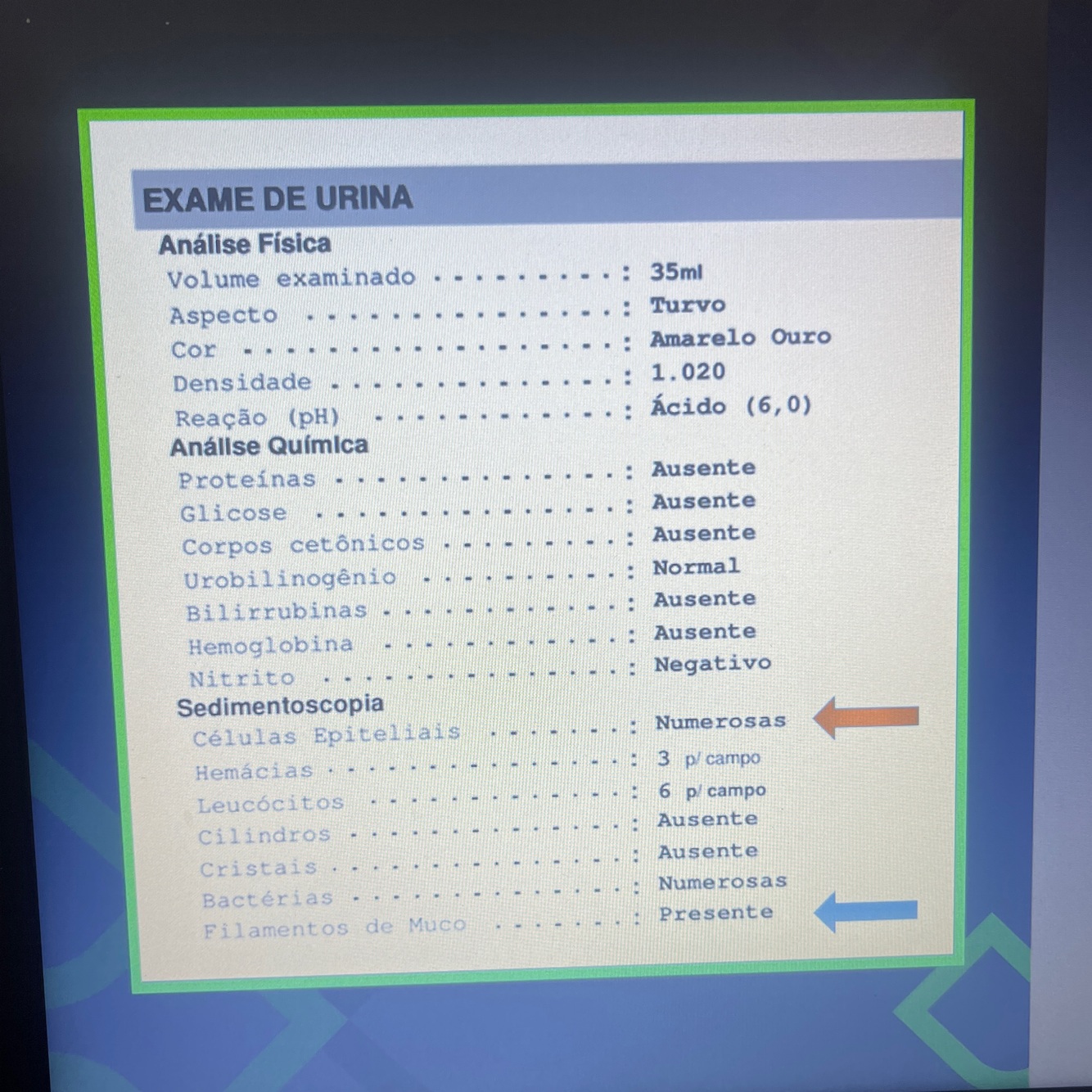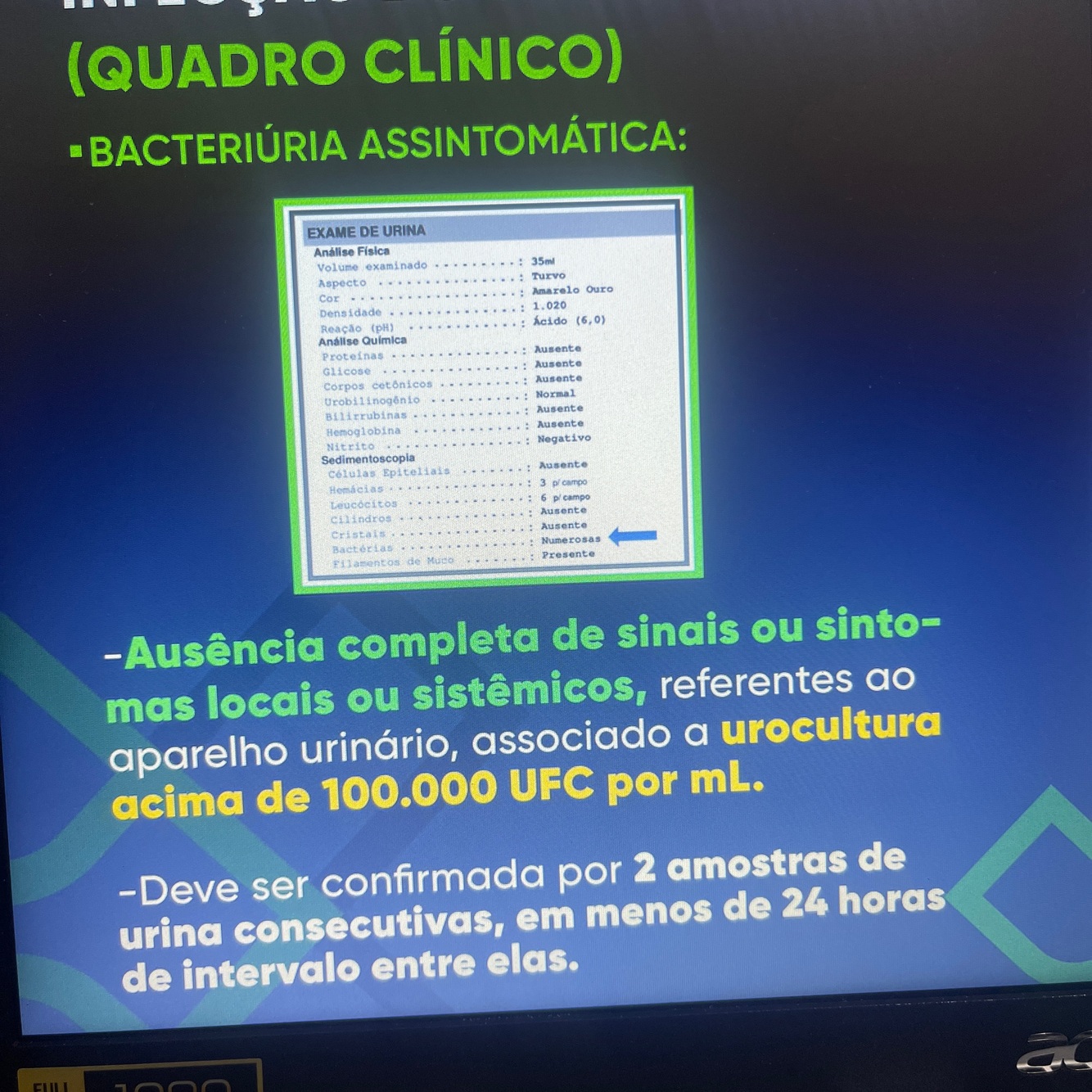 Piúria, presença de mais de 10 piocitos por campo não fecha diagnóstico de infecção urinária e e nem nitrito +
