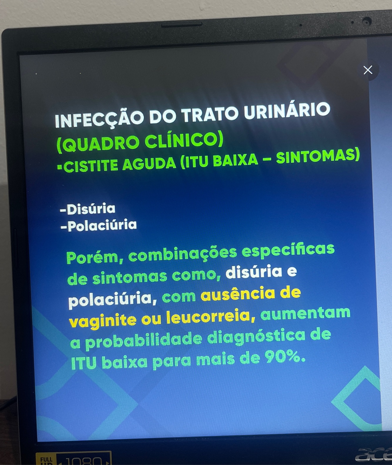 Lembrar que paciente com corrimento vaginal a chance de ser ITÚ cai em 90%