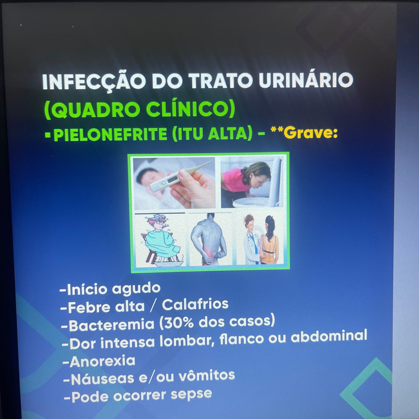 Pielonefrite ( infecção envolvendo ureteres e rins)