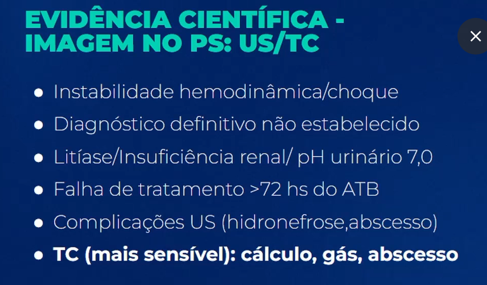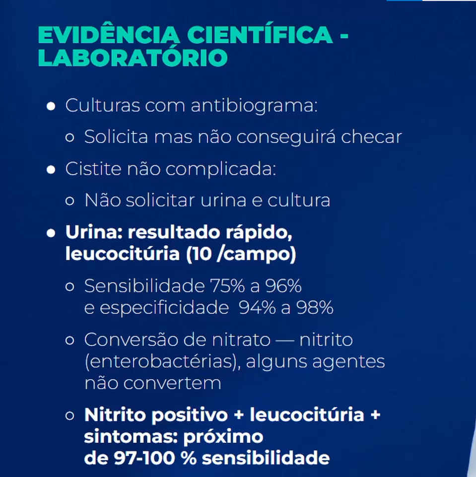 noo paciente que tem suspeita de pielonefrite, ou sintomas sistemicos. Nao temos indicacao em colher em quem tem cistite