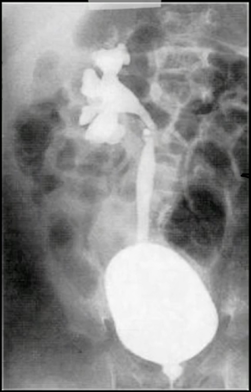 Ela está revelando um refluxovesicoureteral unilateral à direita