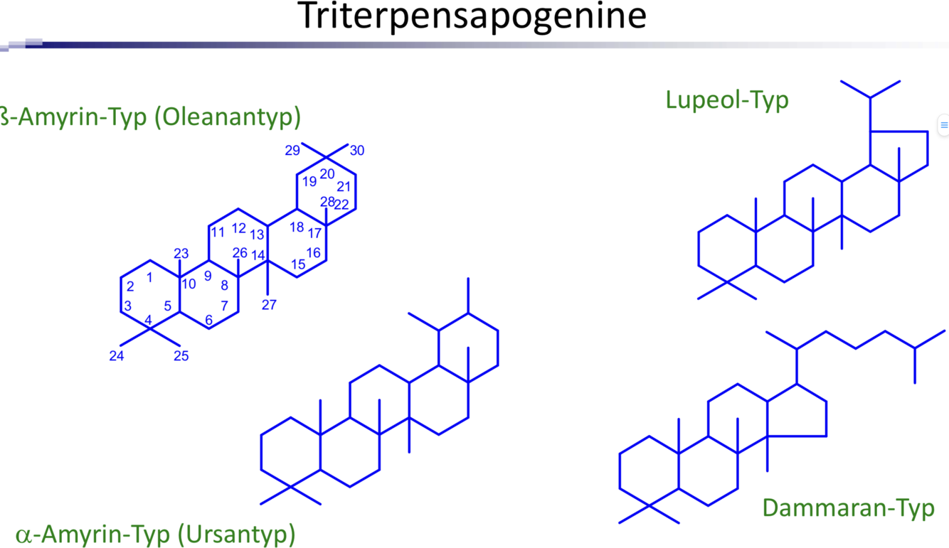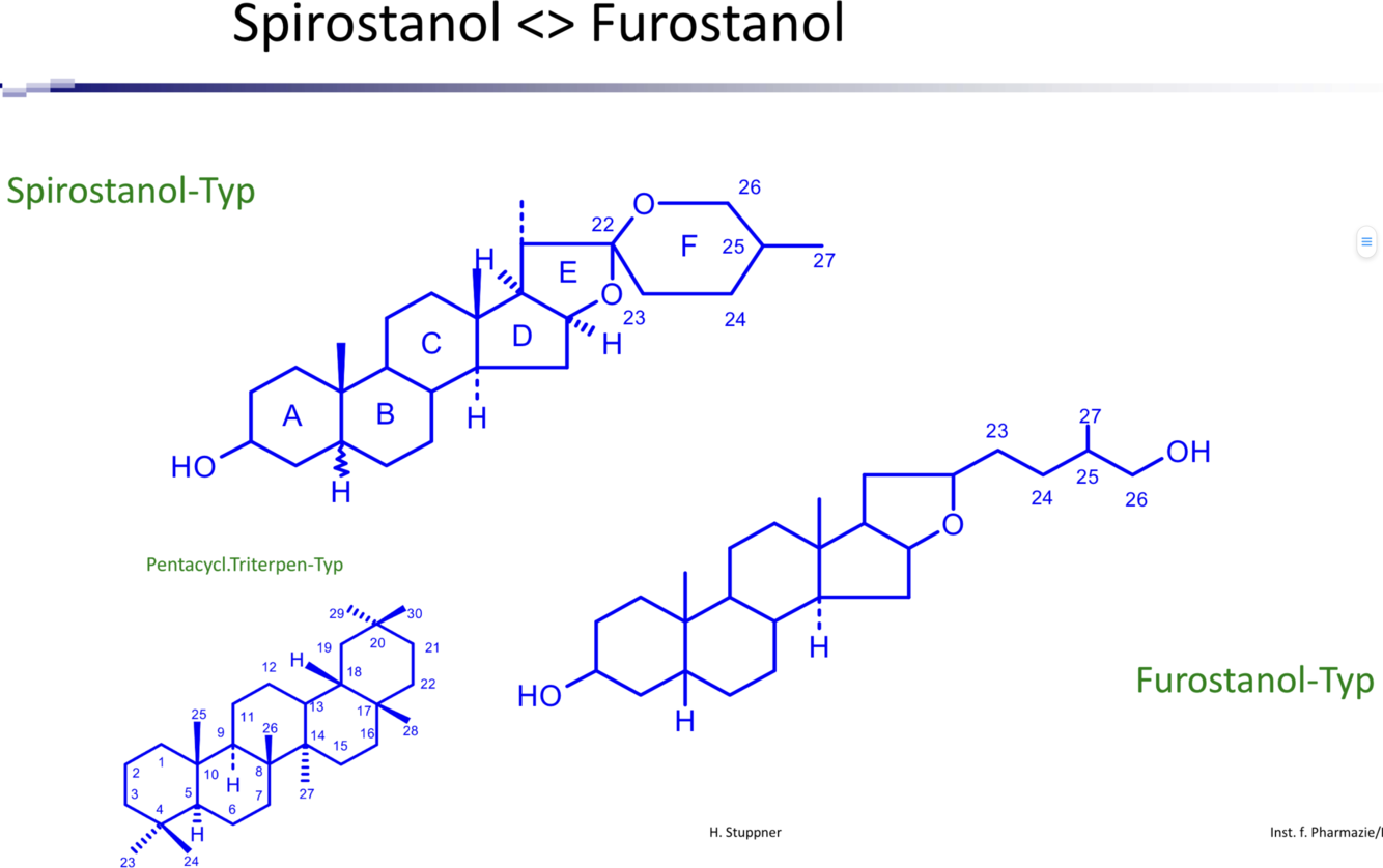 - Bisdesmosidisch -> 2 Zuckerketten am Aglykon über 2 Bindungen verknüpft (meist C2 C17)