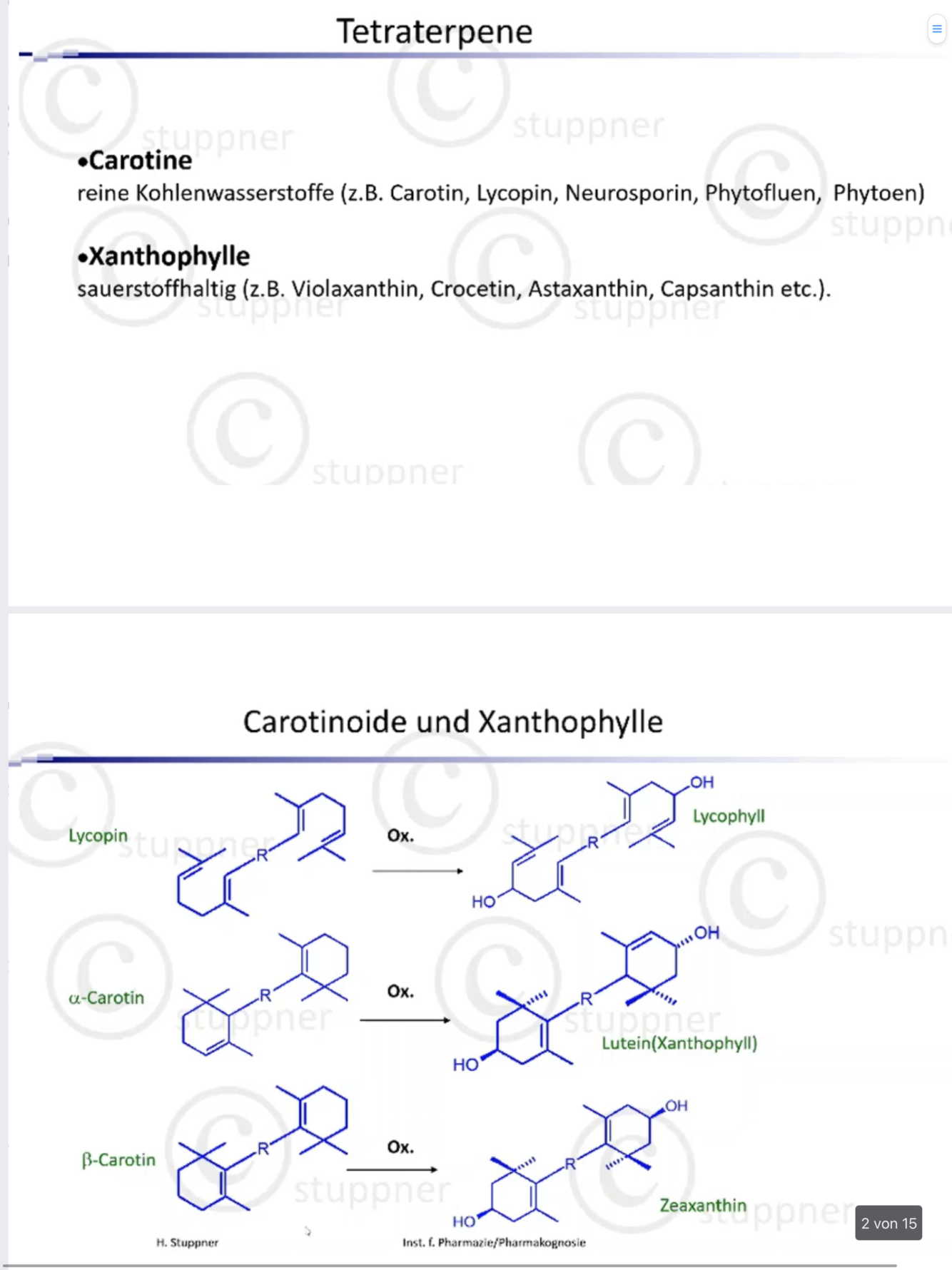 Unterschiede Carotine & Xantophylle, jeweils ein Bsp