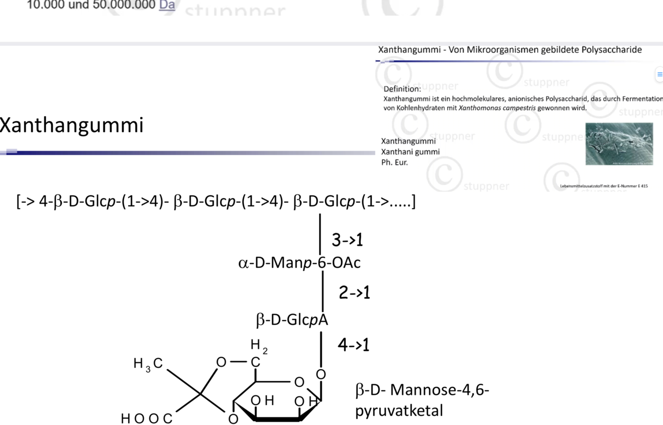 Xanthangummi ist ein hochmolekulars anoionisches Polysaccharid das durch fermentation von Kohlenhydraten mit Xanthomonas capestris gewonnen wird