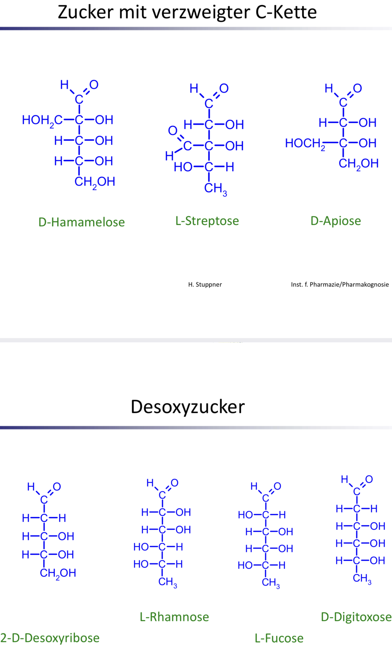 2 Desoxyzucker & 2 Verzweigte Zucker zeichnen & bennen