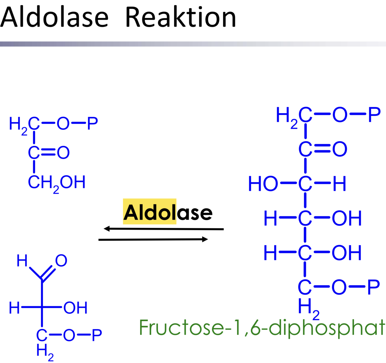 Durch die Aldolase kommt es zu Fructose-1,6-diphosphat