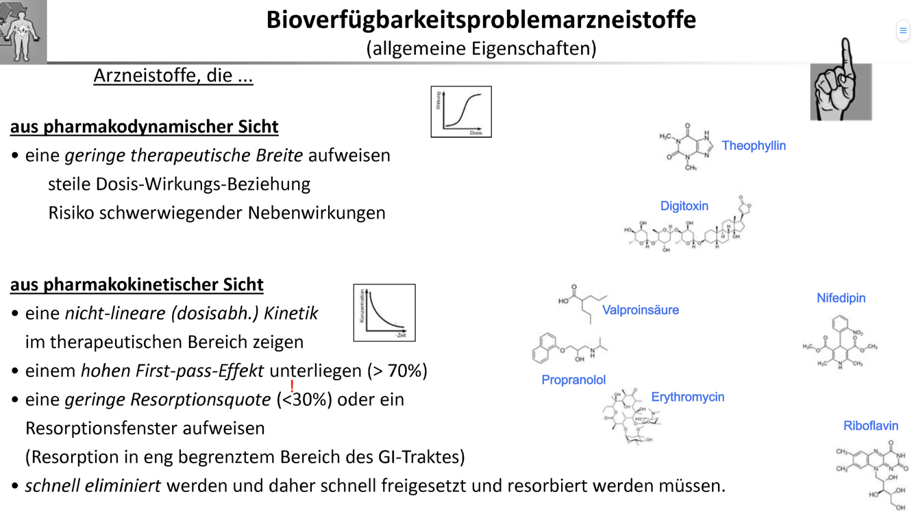 Beispiele Theophyllin, Erythromycin, Digitoxin, Valproinsäure, Propanolol….