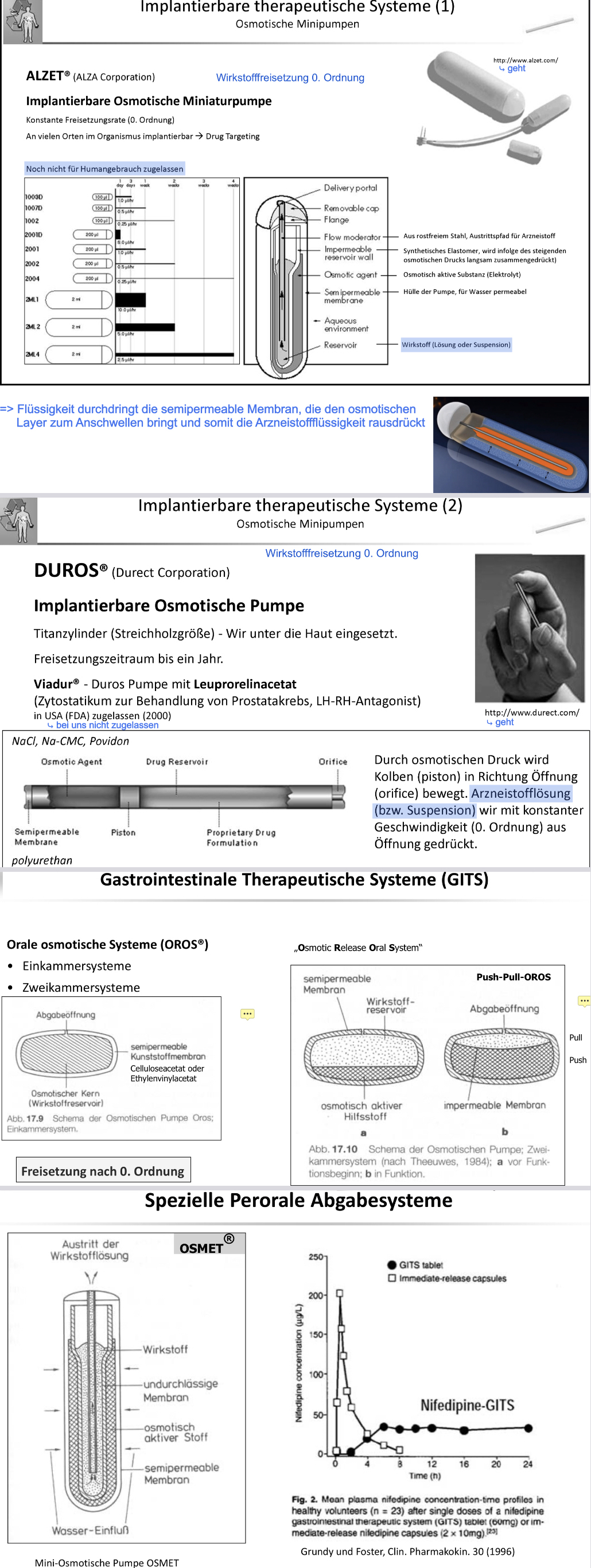 (–> Arzneiform zur langanhaltenden, gleichmäßigen Freisetzung eines WS. Die Freisetzung wird hierbei vom osmotischen Druck kontrolliert)