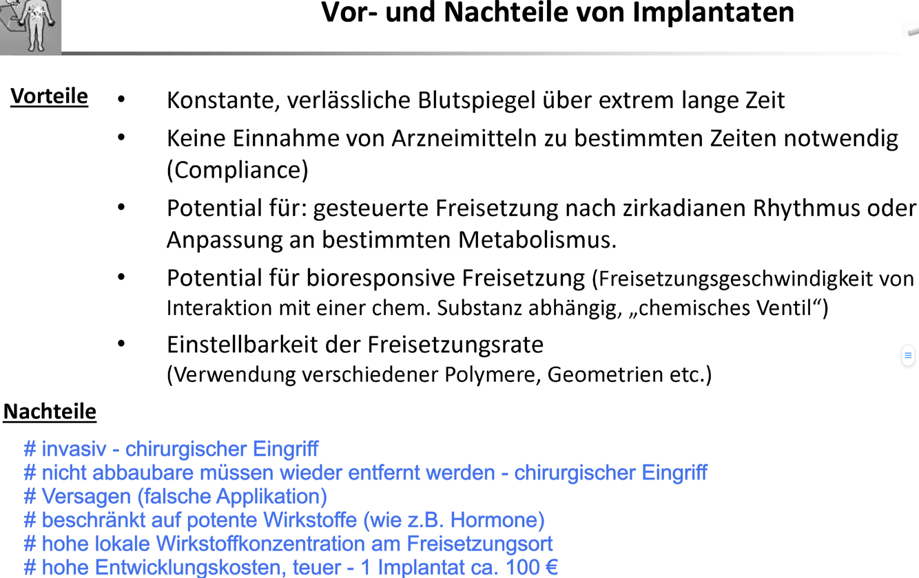 bioabbaubaren Polymeren erlaubt eine bessere Steuerung der Wirkstofffreisetzung wodurch das Nebenwirkungsrisiko minimiert und die therapeutische Sicherheit verbessert werden kann.