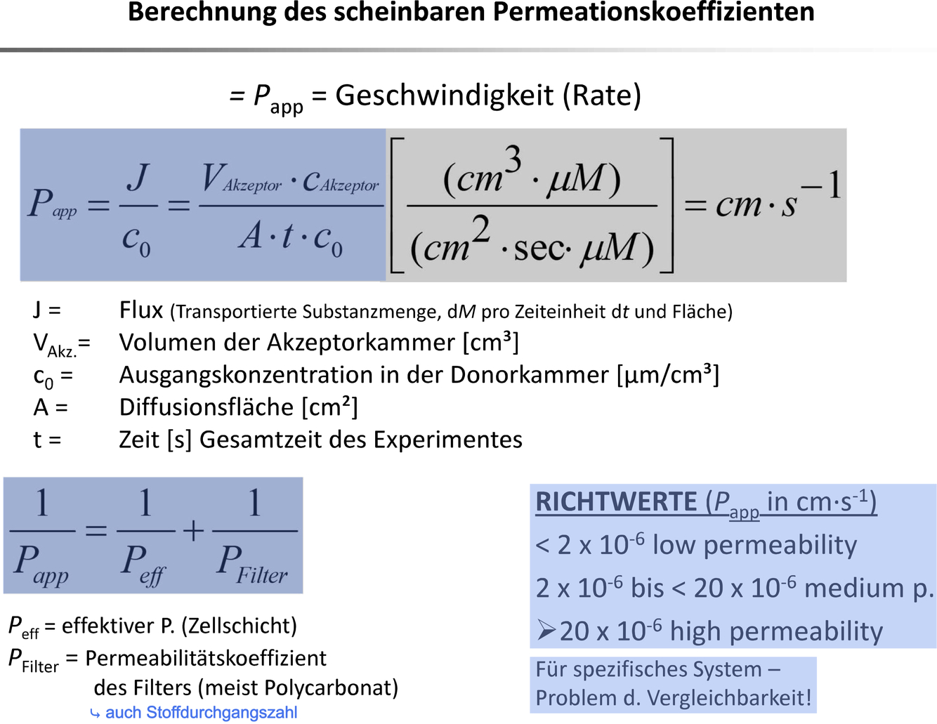 Was ist der scheinbare Permeationskoeffizient. Berechnung! Ab welchem Schwellenwert spricht man von guter Permeabilität?