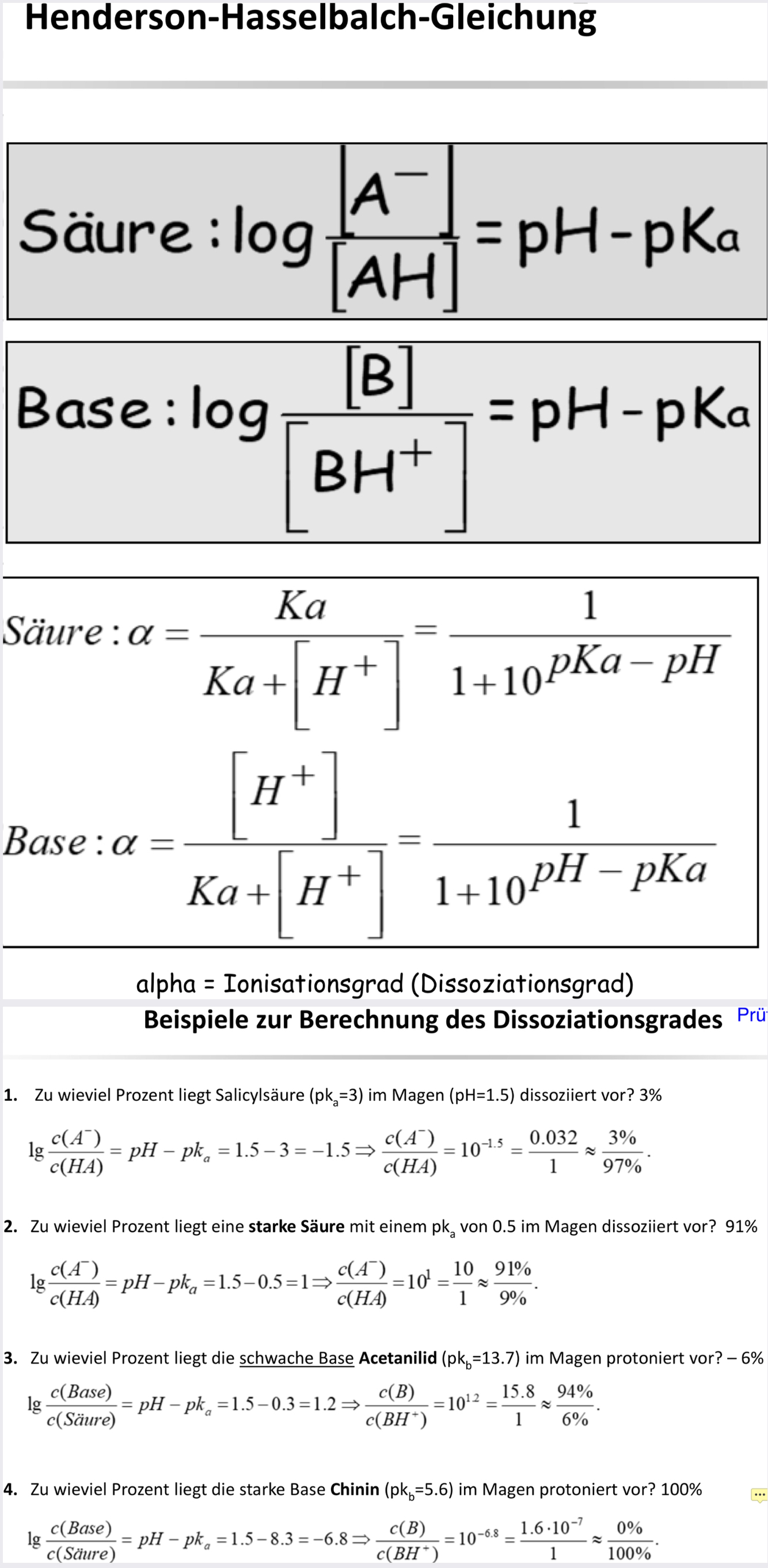 Rechnung mit pH und pkA, dissoziatsion % in Blut