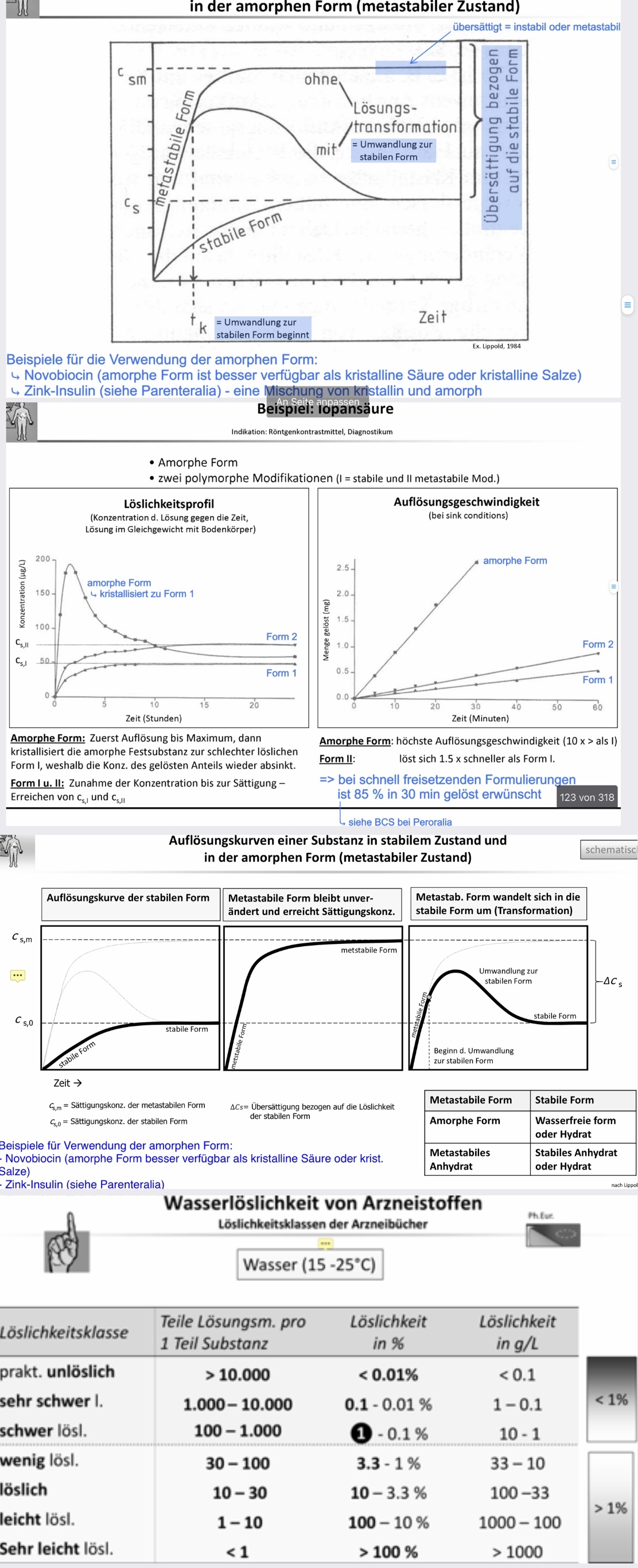 können (welche Arzneiform) und wie man die Löslichkeit bewertet
