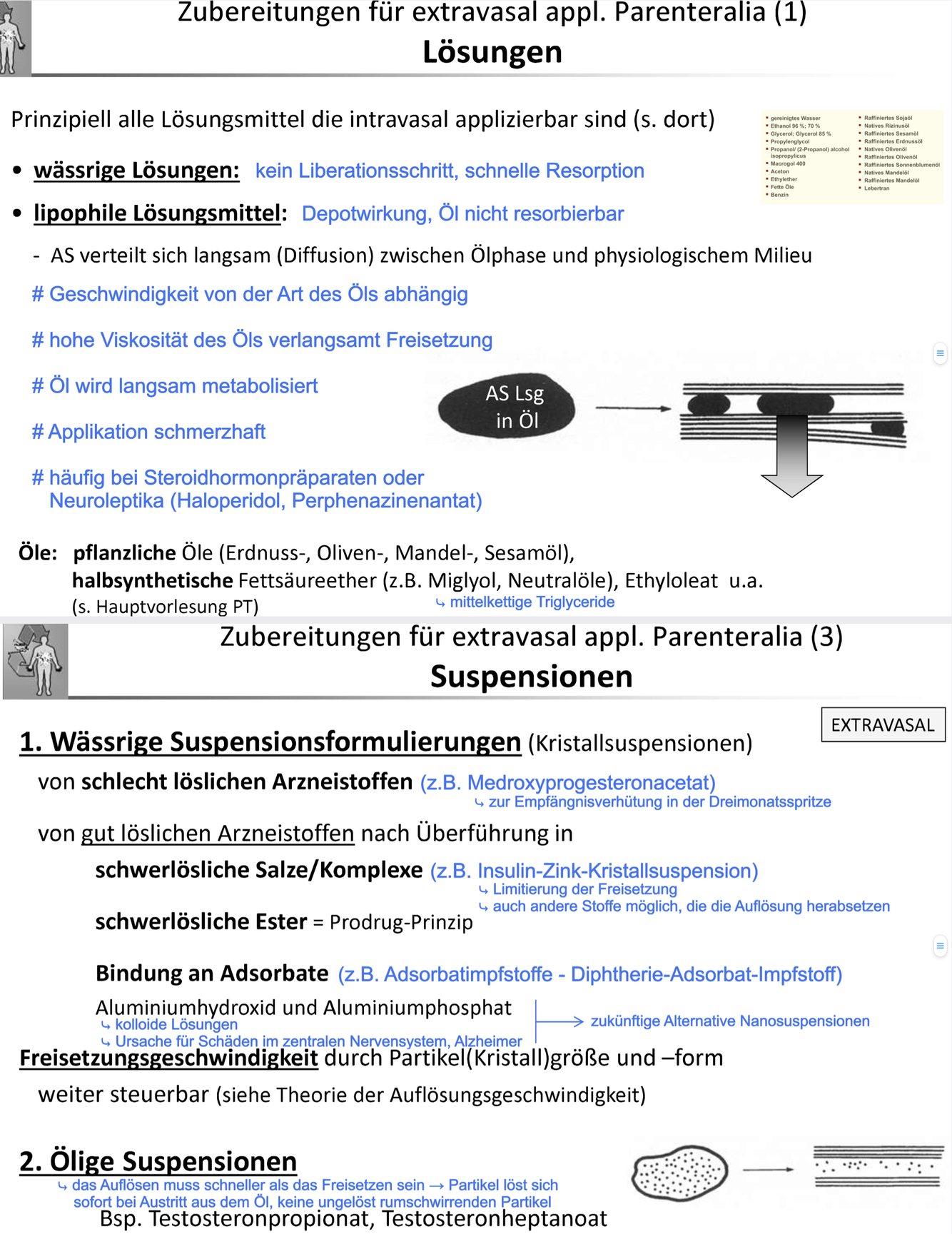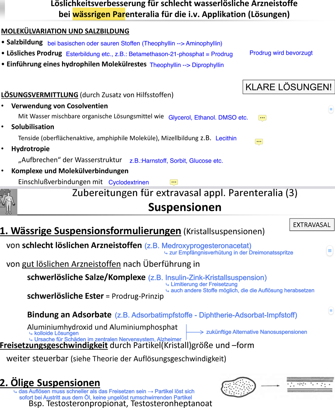 Darreichungssformen sind injizierbar! Intravasal (Nano‐) , extravasal (mikro‐)
