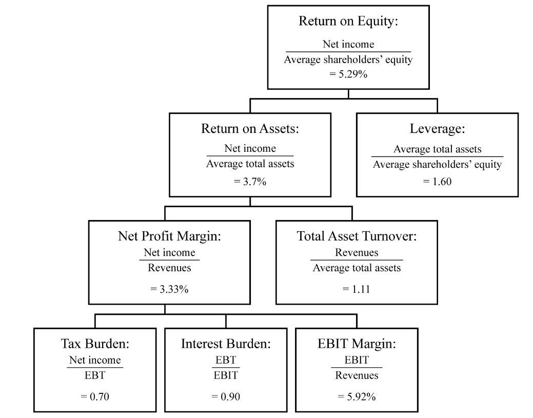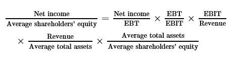 ROE = Tax burden * interest burden * EBIT margin * total asset turnover * leverage