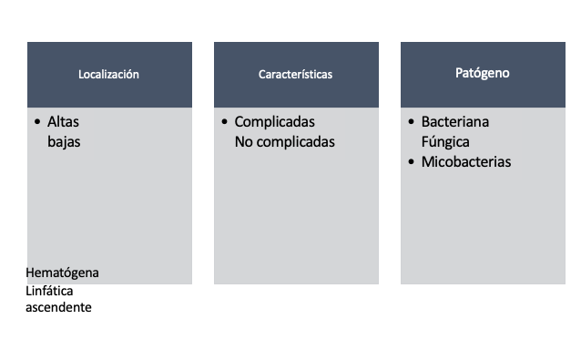 Clasificación según localización, características y patógeno