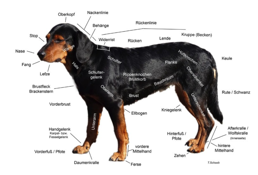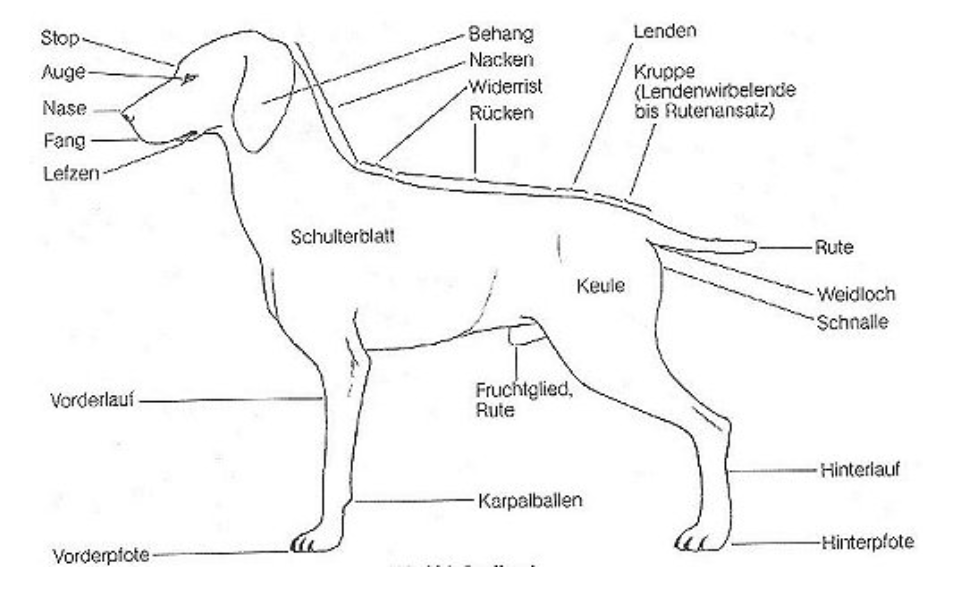 Körperteile des Jagdhundes in der Weidmannssprache: