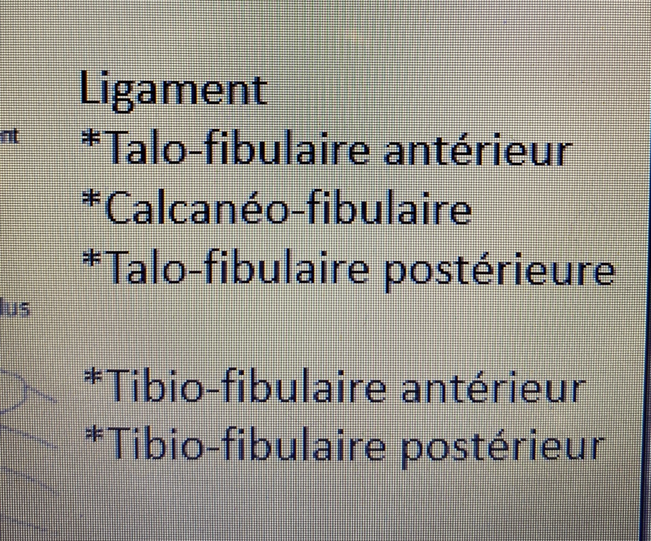 Nomme les ligaments de la cheville
