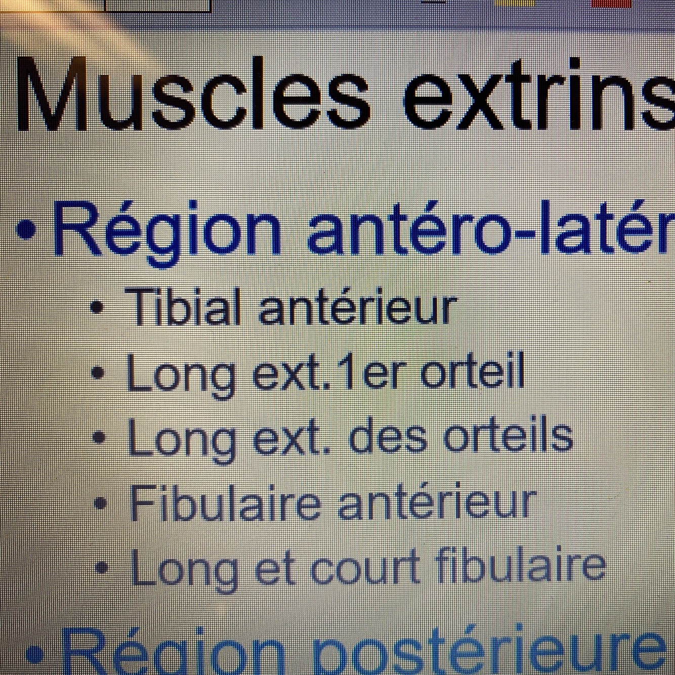 Muscles extrinsèques du pied de la région antero latéral