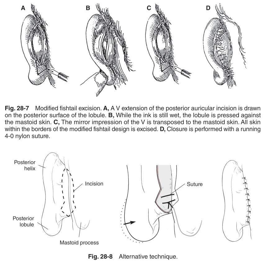 Name two otoplasty techniques for addressing lower third prominence.