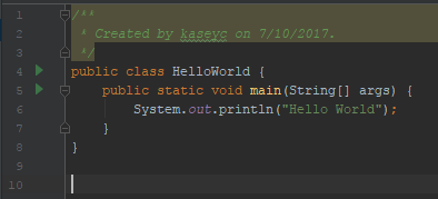 After the open curly brace, you should put each line of code you want the computer to run. Don’t forget to add the closing curly brace after all your code. As you can see in the image it is convention to add a layer of indentation between the main method and the class, this shows that the main method is inside the class.