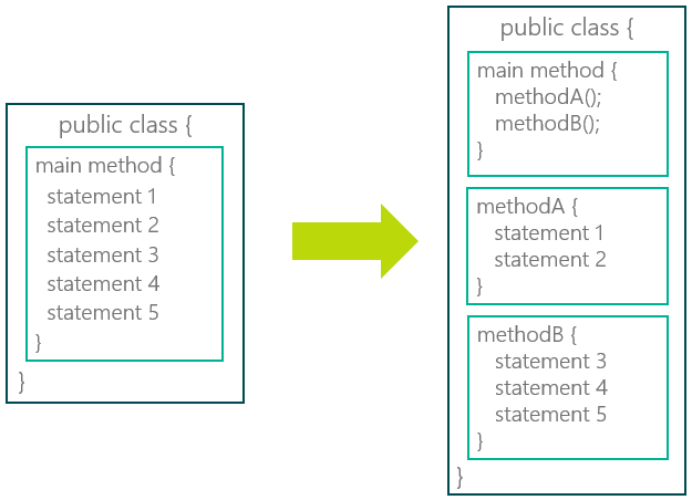 The process of breaking a task down into smaller parts is called “procedural decomposition”, and almost all programming languages provide a way to do this. Java does it using what it calls “methods”. In general, you should break your program up into methods when: