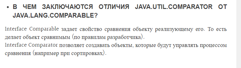 Т.е. интерфейс Comparator он как надстройка для класса,он извне идет, т.е. его берут для настройки сравнения, а Comparable он уже есть внутри класса