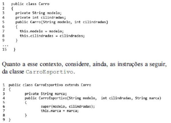 e) a instrução super, na linha 6 da classe CarroEsportivo, pode permitir à classe CarroEsportivo acessar atributos públicos da classe Carro.
