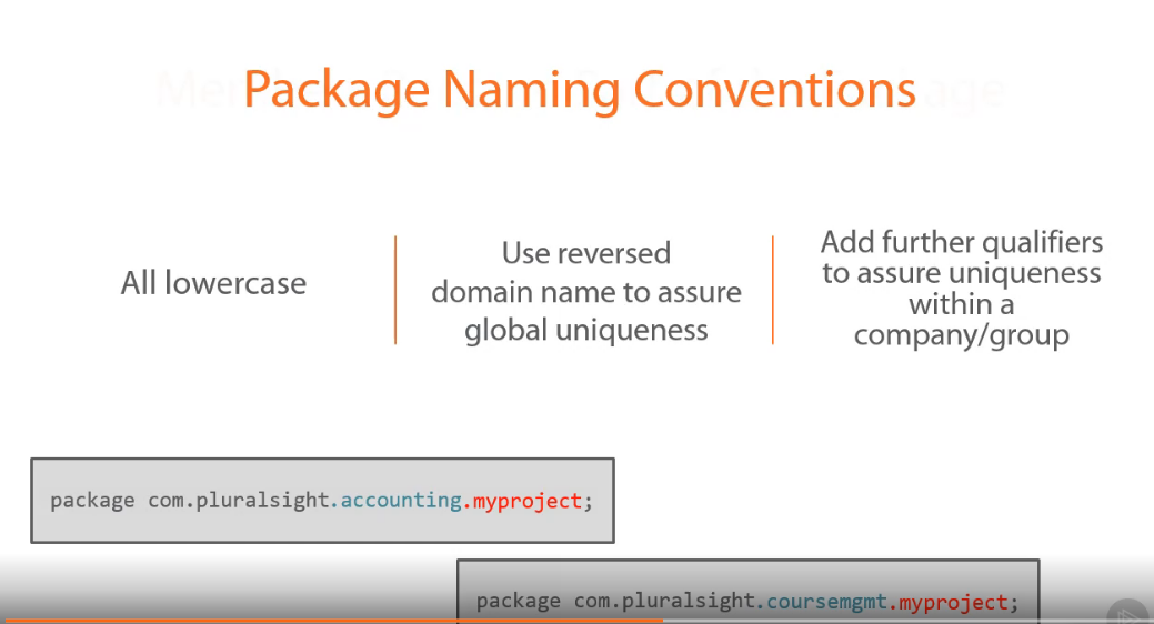 Package names are all lowercase. Package names create uniqueness, so follow a convention in naming a package to create a global uniqueness. These above are just convention nothing like a hard rule.