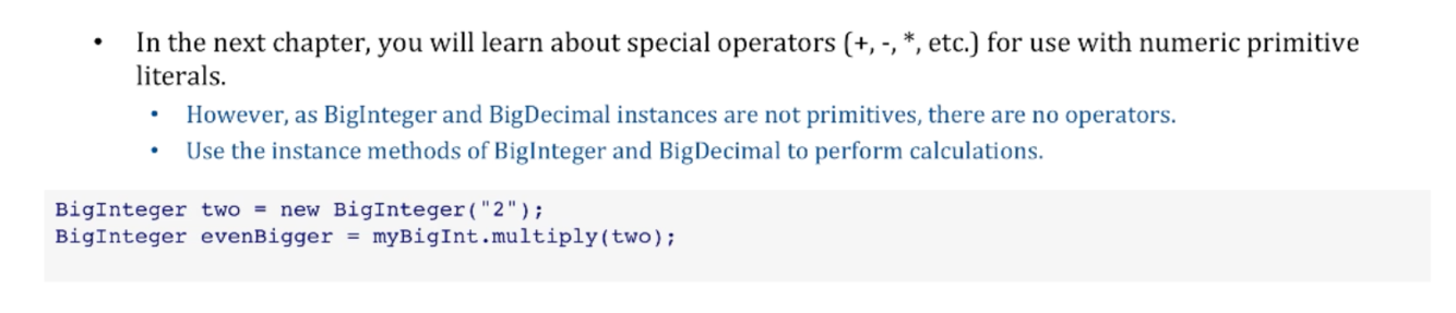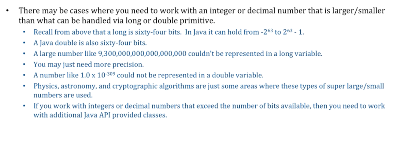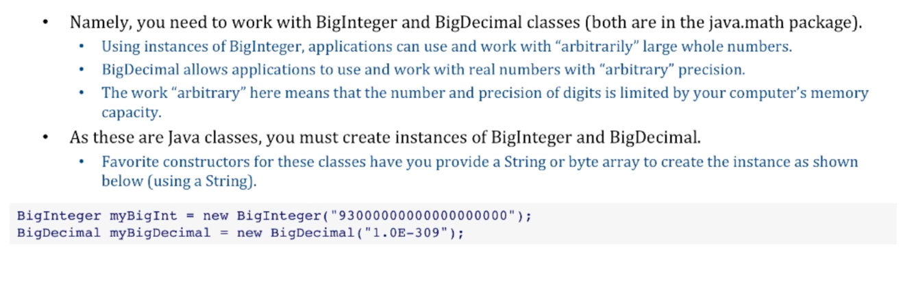 System.out.println("Long value: " + xLong);What are the BigInteger and BigDecimal classes in Java? Explain