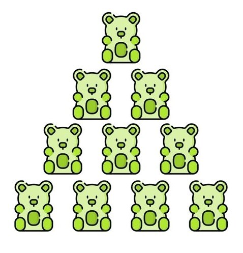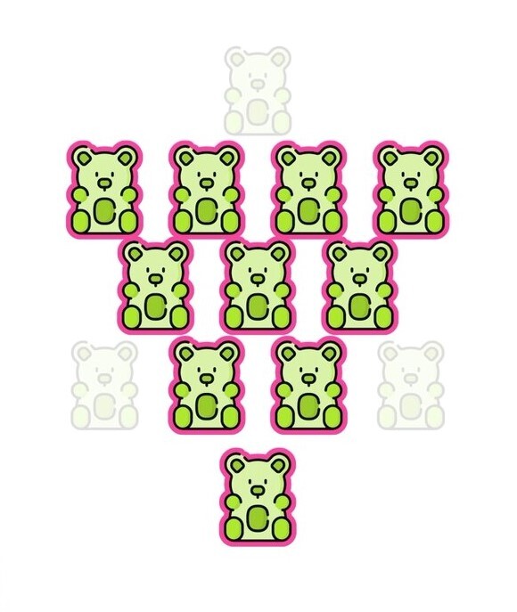 How can you flip the gummy bear pyramid upside down by moving only 3 gummy bears?