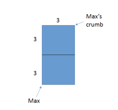 Clearly, Max’s fastest route will be a straight line to the crumb. Using the pythagorean theorem (or graph paper and a good ruler), you can determine that his shortest path is √45 inches, or 6.71 inches.