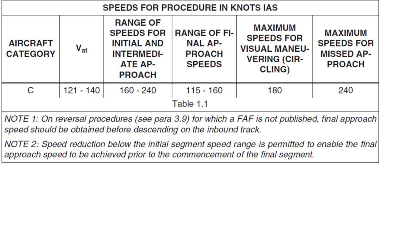 MAXIMUM SPEEDS FOR MISSED APPROACH 240